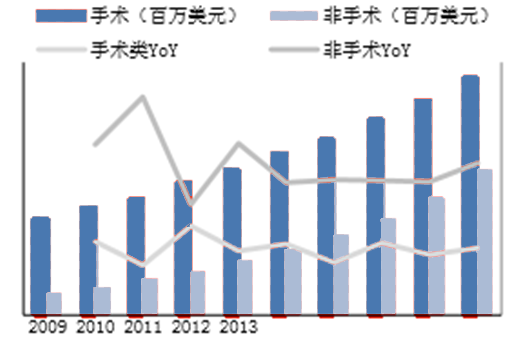 未來 3-5 年手術類市場規模依舊占據主導地位