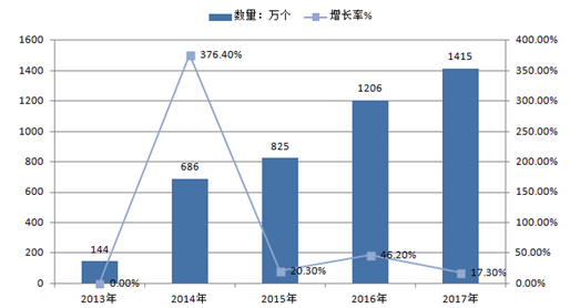 2013-2017年中國微信公眾號數(shù)量預(yù)測