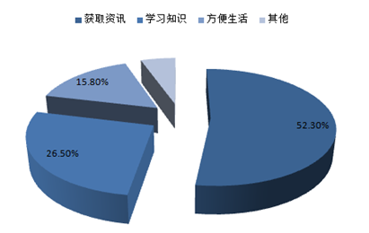 2016年中國網(wǎng)民在使用微信號中,有52.3%的人將其作為獲取最新資訊的工具。另外,26.5%的人用于學(xué)習(xí)知識。