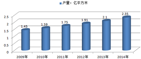 2014年中國PCB電路板產量約2.35億平方米,同比2013年的2.10億平方米增長了11.90%