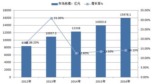 2012-2016年中國家政行業市場規模走勢