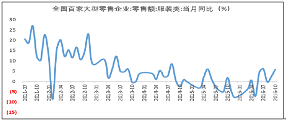全國百家重點大型零售企業服裝類商品零售額同比增幅