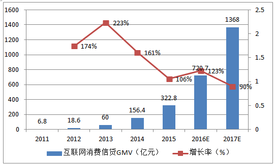 互聯(lián)網(wǎng)消費(fèi)金融交易規(guī)模及增長(zhǎng)率