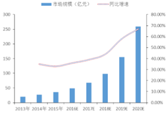 根據(jù)相關(guān)數(shù)據(jù),2015 年全球民用消費(fèi)級(jí)和專業(yè)級(jí)無人機(jī)出貨量分別為 600萬架和 10萬架,到2020年將分別達(dá)到2200萬架和 50萬架,復(fù)合年增長(zhǎng)率約為33%。 全球民用無人機(jī) 2013 年市場(chǎng)規(guī)模 20 億美元,2014 年市場(chǎng)規(guī)模達(dá)到 27 億美元,同比增長(zhǎng) 35%;2015 年市場(chǎng)規(guī)模 36 億美元,同比增長(zhǎng) 33%。預(yù)計(jì) 2020 年全球無人機(jī)市場(chǎng)規(guī)模將 達(dá)到 259 億美元,年均復(fù)合增長(zhǎng)率達(dá)到 42%。