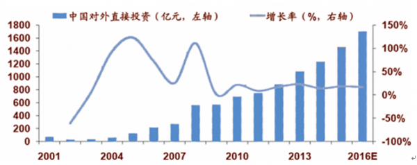 2016年全年中國對外直接投資很可能超過1700億美元,再創歷史新 高,預計未來數年海外投資年增速仍將保持兩位數增長