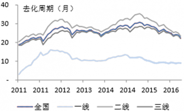 截止 2016 年 10 月底,一線城市去化周期約為 9 個(gè)月