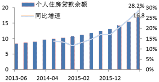 截止 2016 年第三季度,個人住房貸款余額為 16.8 萬億元