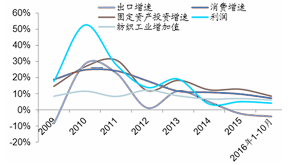 - 2009 -2016年10月紡織行業(yè)主要經(jīng)濟指標變化