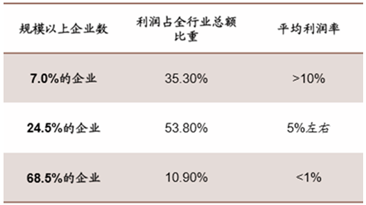 我國規(guī)模以上紡織企業(yè)利潤分布