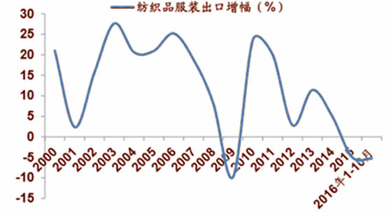 紡織品服裝出口累計同比下降