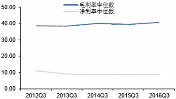 毛利率與凈利率中位數情況(%)