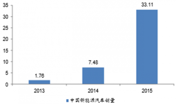 2013-2015 年中國新能源汽車銷量情況(萬輛)