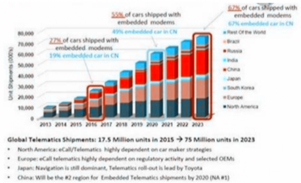 2017年全球車聯(lián)網(wǎng)市場滲透率、市場規(guī)模、市場占有情況及市場發(fā)展?jié)摿︻A(yù)測