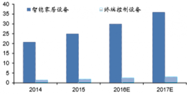 2014-2017 美國智能家居設備出貨量預測(百萬臺)