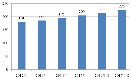 電機(jī)驅(qū)動(dòng)器(低壓)的下游應(yīng)用領(lǐng)域非常廣闊,幾乎涵蓋國(guó)民經(jīng)濟(jì)的各個(gè)領(lǐng)域,目前在我國(guó)應(yīng)用較多的行業(yè)為新能源汽車、紡織印染、電梯、起重機(jī)械、冶金、電力、石油石化、建筑樓宇、市政、化工、建材及機(jī)床等。隨著電機(jī)驅(qū)動(dòng)器(低壓)在我國(guó)各行業(yè)的推廣應(yīng)用,其市場(chǎng)規(guī)模迅速增長(zhǎng),伴隨產(chǎn)業(yè)升級(jí)對(duì)工業(yè)自動(dòng)化控制水平提出更高要求、 勞動(dòng)力成本上升帶動(dòng)自動(dòng)化設(shè)備改造以及節(jié)能減排技術(shù)日趨成熟,電機(jī)驅(qū)動(dòng)器(低壓)市場(chǎng)將保持持續(xù)增長(zhǎng),預(yù)計(jì) 2017 年其市場(chǎng)規(guī)模將達(dá) 225 億元。