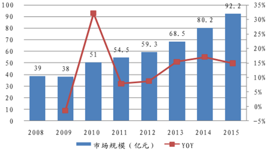 新能源是汽車和充電樁是 IGBT 未來 最大的增量市場。受益于新能源電動汽車、智能電網、軌道交通的快速發展,未來 IGBT 市場將迎來爆發。從成本上看,IGBT 模塊占新能源汽車控制器成本約 50%,占電動汽車成本約 10%,占充電樁成本約 20%,預計未來 5 年新能源電動汽車和充電樁將帶動 IGBT 模塊快速增長。2014 國內 IGBT市場規模 92.2 億元,占全球市場 1/3 左右,預計“十三五”期間復合增長率 15%,到 2020 年國內市場規模將近 186 億元。