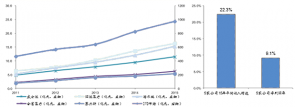 其中,高值耗材和IVD試劑市場(chǎng)較大、增速較快、附加值較高,是流通中最具投資價(jià)值的領(lǐng) 域,我們測(cè)算2015年全國(guó)高值耗材市場(chǎng)規(guī)模約1250億元(終端),IVD試劑(終端)市場(chǎng) 規(guī)模約1000億元,增速20%左右。