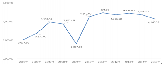 2005-2015年冰箱銷售情況 (單位:萬臺)
