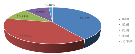眾多的出口市場中,未來新興市場將成為我國空調出口的最主要增長點。在全球氣候變暖趨勢持續,極端惡劣天氣此起彼伏的背景下,印度、印尼、巴西、巴基斯坦、孟加拉、俄羅斯等新興市場人口眾多,而空調產品尚處于導入期,增長空間巨大。我國空調出口區域分布如下: