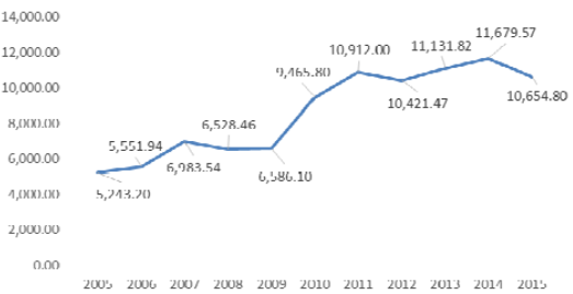 2005-2015年中國空調出口情況 (單位:萬臺)