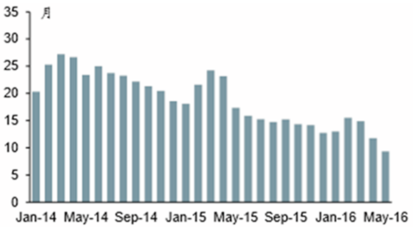 2016年中國房地產新開工面積、施工面積及去庫存化周期變動趨勢分析