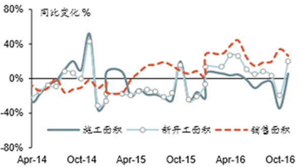 施工面積 / 新開工面積 / 銷售面積同比變動趨勢