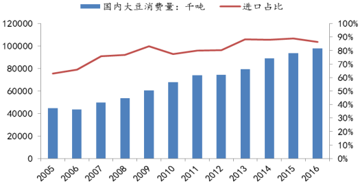 國內大豆消費對外依存度較高