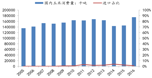 國內玉米消費對外依存度較低