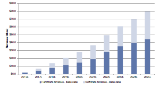 2016-2025 年 VR/AR 軟硬件市場(chǎng)規(guī)模增長(zhǎng)情況