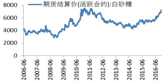 我國白砂糖期貨結算價(元/ 噸)
