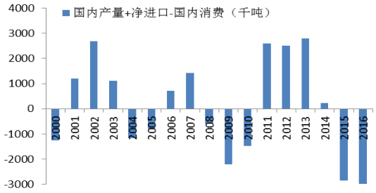 我國糖產量+ 凈進口—國內消費量