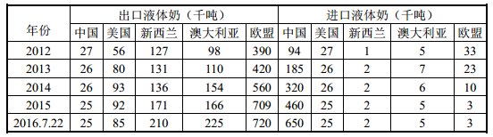 我國與世界主要液體奶進(jìn)出口國的對(duì)比