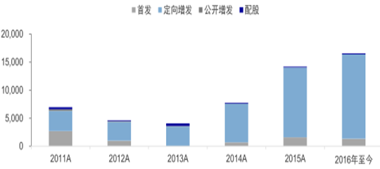 2011-2016 年11月股權融資承銷金額(億元)構成情況