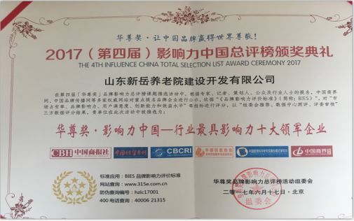 核心提示:2017年6月17日,第四屆中國“華尊獎品牌影響力總評榜”在北京全國人大會議中心召開,山東新岳養(yǎng)老院作為養(yǎng)老行業(yè)創(chuàng)新品牌受邀出席了此次盛會。2017年6月17日,第四屆中國“華尊獎品牌影響力總評榜”在北京全國人大會議中心召開,山東新岳養(yǎng)老院作為養(yǎng)老行業(yè)創(chuàng)新品牌受邀出席了此次盛會。據(jù)悉,“華尊獎”是唯一真實反應(yīng)消費者期望和品牌感知的口碑獎項、是目前最受關(guān)注的口碑獎項,體現(xiàn)了企業(yè)品牌的公眾形象。