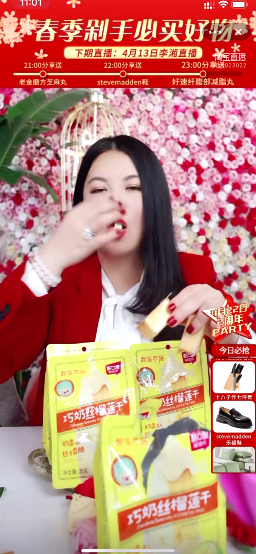 在之前的直播中,李湘的帶貨實績就非常驚人,粉絲數兩百七十余萬、場均點贊和評論超四百萬,粉絲轉化率高達近90%!這也證明了轉戰直播行業的李湘擁有絕對人氣和實力。而這次的巧奶絲榴蓮干在李湘本就火爆的直播間可以說是大放異彩。李湘透露,這款榴蓮西施的榴蓮干已經在直播間給大家推薦過許多次了,是她和女兒每次出差都要帶到飛機上解饞的一款零食。