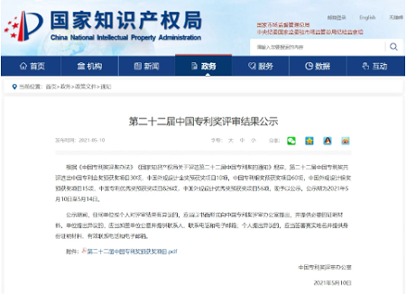 喜報!第二十二屆中國專利獎預獲獎項目發布,倍輕松兩項專利入圍