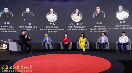 緊接著,本次論壇還特別設立了圓桌對話環節,由孫鍵老師主持,著名家庭教育專家盧勤女士、世界孔子后裔聯誼會會長孔眾先生、心和青少年商學院執行院長Cicy李玥彤女士、廣東電視臺副臺長湯聰先生、新僑教育總經理袁拔先生共同探討家業永續的踐行理念與要義。