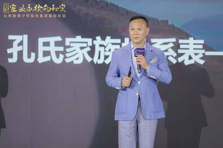 而后,世界孔子后裔聯誼會會長孔眾先生分享主題《中華文化與家族傳承》。孔眾老師表現出對中國傳統文化的深度了解,并結合自身經驗,以中華文明這一大格局切入具有中國色彩的處世哲學中,深度揭示了中國人的信仰與思考方式,并以此分析了中國獨特的詩禮傳家方式。