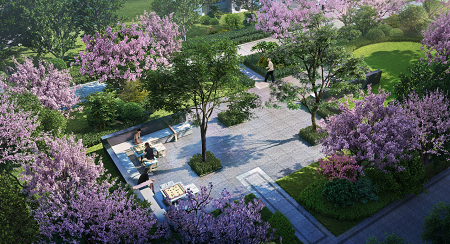 萬科繁榮里住宅外立面采用現代簡約風格,建筑呈南北布局,景觀層層打開,至寬約60米樓間距,約22%的建筑密度,優化采光。另外,萬科繁榮里融合東方人居的智慧美學,高綠化率打造新中式美學園林,整個園林沿襲了中國古典園林造園法則,一府一軸一環七園五大特色主題園景,約300米四進禮儀歸家景觀軸,約3000㎡中央公園,園林內約有40種苗木、約40種花卉,打造高低錯落的七重景觀,更有層次感,更具觀賞性和體驗感。