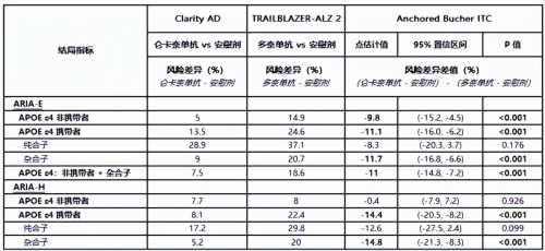 值得一提的是,即便TB-ALZ 6研究減少了納入更容易發生ARIA事件的APOE ε4攜帶者比例,整個研究僅有21名APOE ε4純合子患者接受了改良滴定劑量,不符合現實中的攜帶者比例,可即便如此,侖卡奈單抗依然存在安全優勢。