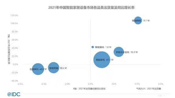 核心提示:市場研究機構IDC發布的報告數據顯示,2021年第四季度中國智能家居設備市場出貨量為6337萬臺,同比增長4.1%;2021年中國智能家居設備市場出貨量超過2.2億臺,同比市場研究機構IDC發布的報告數據顯示,2021年第四季度中國智能家居設備市場出貨量為6337萬臺,同比增長4.1%;2021年中國智能家居設備市場出貨量超過2.2億臺,同比增長9.2%。