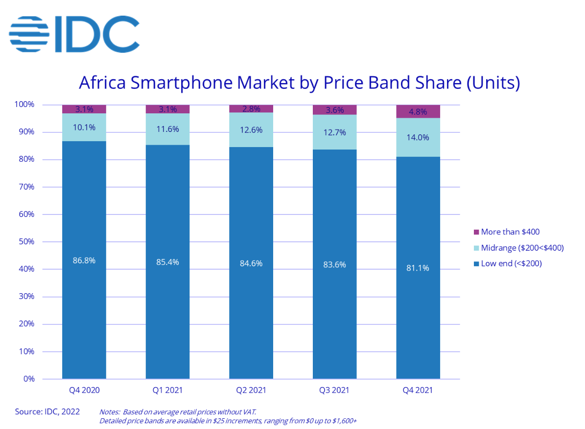 IDC:2021年Q4非洲手機市場出貨量同比下降11.3%