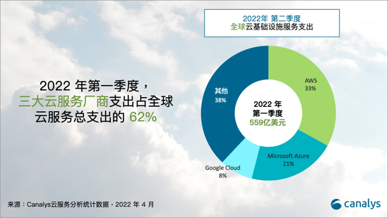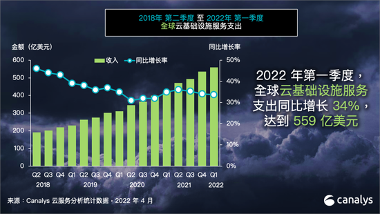 Canalys:全球云服務支出在2022年第一季度攀升至559億美元