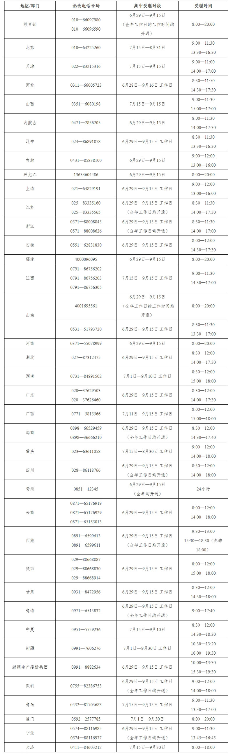 教育部要求各省(區(qū)、市)及所屬高校、中央高校學生資助管理部門均開通熱線電話,并結合實際情況自行確定集中受理時段和具體受理時間。