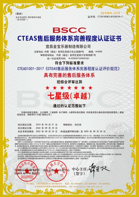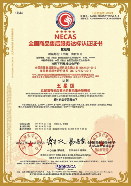 柏斯音樂集團(tuán)旗下柏斯琴行、宜昌金寶樂器制造有限公司自2019年起,連續(xù)多年榮獲CTEAS售后服務(wù)體系完善程度認(rèn)證七星(卓越)認(rèn)證、全國商品售后服務(wù)達(dá)標(biāo)認(rèn)證五星認(rèn)證,是目前最高的售后服務(wù)認(rèn)證等級。