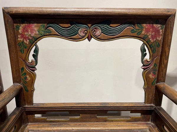 玫瑰椅常見的式樣是在靠背和扶手內(nèi)部裝券口牙條,與牙條端口相連的橫棖下又安短柱或牡丹花。也有在靠背上作透雕,式樣較多,別具一格。是明式家具常見的一種椅子式樣。
