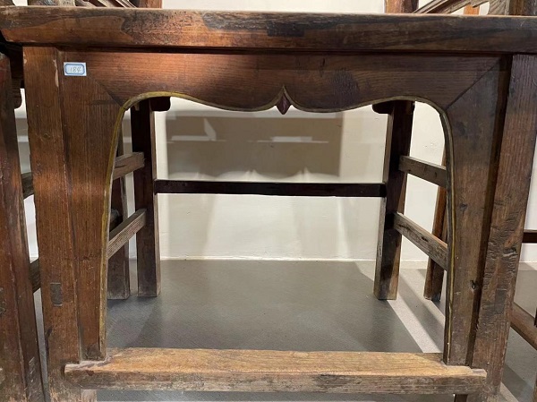 牙子下腳,即交代在橫棖上。椅盤造成冰盤沿線腳,下面用羅鍋棖加矮老,管腳棖以下有素牙條。在玫瑰椅中,它是最常見的式樣。