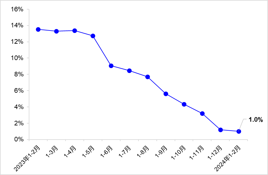 1—2月,完成交通固定資產(chǎn)投資3885億元,同比增長(zhǎng)1.0%。其中,完成公路投資2736億元,同比下降6.4%;完成水運(yùn)投資273億元,同比增長(zhǎng)17.0%。