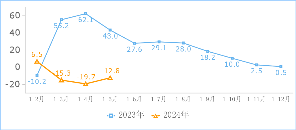 圖5 2024年1-5月份經濟帶地區互聯網業務收入增長情況