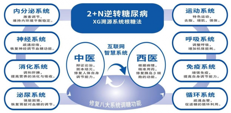 該療法已實現上萬例的成功逆轉——在對2型糖尿病患者經科學評估后,由多學科醫護團隊針對其發病根源與本質,量身定制逆轉方案,通過獨特的“2+N”系統化治療,修護胰島β細胞,恢復人體內分泌系統、神經系統、消化系統、循環系統等八大系統的調糖能力,進而達到血糖達標穩定、停藥/減藥、遠離并發癥風險、提高生活質量與生命質量等目的。